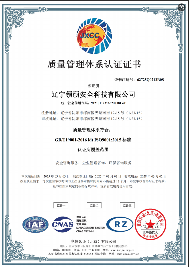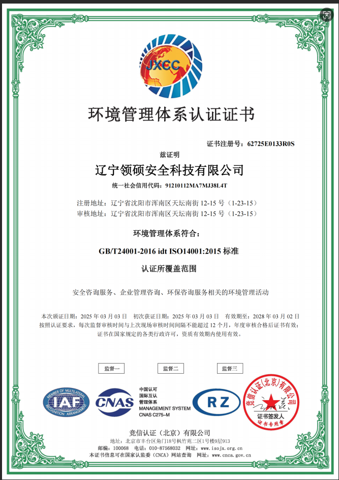 遼寧領碩安全科技有限公司位于遼寧省沈陽市渾南區天壇南街12-15號,注冊資金300萬。主要經營范圍為遼寧省范圍內的安全環(huán)保咨詢,生產安全事故應急預案技術服務、企業雙重預防機制建立、履職能力評估、企業科研項目安全部分服務等的技術服務機構?,F有員工12人,其中包括5名遼寧省級安全生產專家。成立于2022年4月18日,在盤錦市成立至今已經為30余家企業提供了安全環(huán)保技術咨詢。 業務范圍包括:技術服務、技術開發(fā)、技術咨詢、技術交流、技術轉讓、技術推廣,安全咨詢服務,環(huán)保咨詢服務,標準化服務,企業管理咨詢,科技中介服務,工程管理服務,特種作業...查看更多